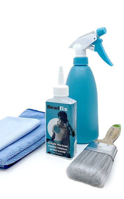 Beatfix Record Cleaner is een biologisch reinigingsvloeistof voor platen en singles. Door zijn unieke eigenschappen ook geschikt voor schellak platen en de oude 78 toeren platen. Door de unieke werking van Beatfix is het resultaat verbluffend, zelfs op de meest eenvoudige wijze met alleen de kwast en de speciale doekjes. Beatfix is sterk geconcentreerd. Een flesje is goed voor het reinigen van zeker 800 platen.